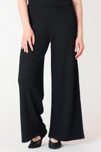 Elevate your style with Dex Black Tape Textured Flowy Wide Leg Pants. The textured fabric adds a touch of interest while keeping you soft and comfy. With a high waist and wide cut, these pants elongate your legs for an elegant silhouette. Perfect for any occasion, dress them up or down for a versatile look.Ā By Black Tape.