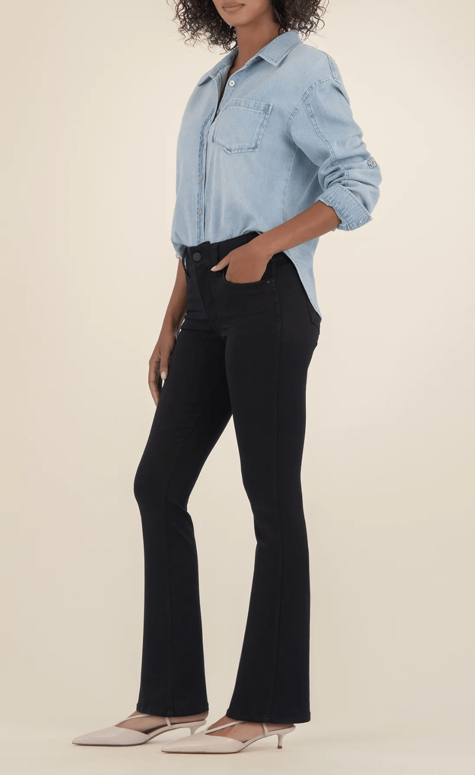 Experience comfortable style with the Kut from the Kloth Natalie High Rise FAB AB Bootcut in classic black. Designed to flatter your figure with a high-rise fit and subtle bootcut leg, these jeans offer a modern silhouette that works effortlessly from day to night. The soft fabric blend provides all-day comfort and flexibility, making them perfect for your busy lifestyle. Elevate your wardrobe with a versatile pair that pairs well with any top or shoe choice.